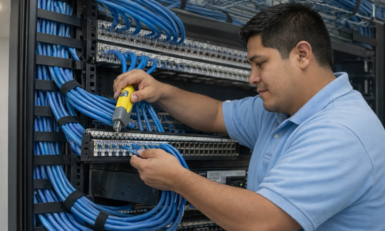 Realizamos la instalación o reestructuración del cableado bajo estándares de calidad y certificación, garantizando la velocidad, la seguridad física y la fácil gestión de su infraestructura.
